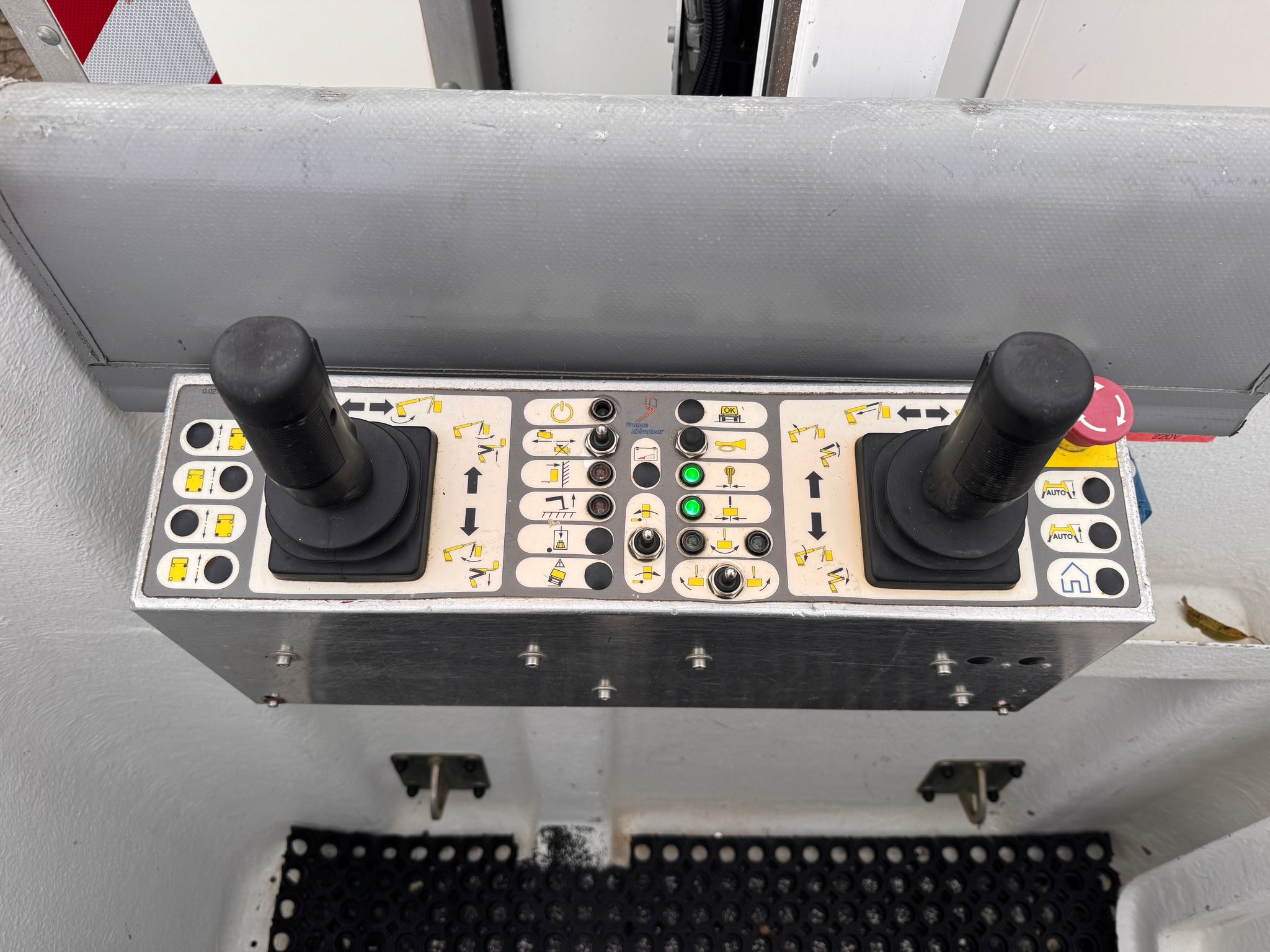 W koszu znajduje się gniazdko 220V do podłączania różnego rodzaju narzędzi elektrycznych, takich jak wiertarki, lampy czy przyrządy pomiarowe.