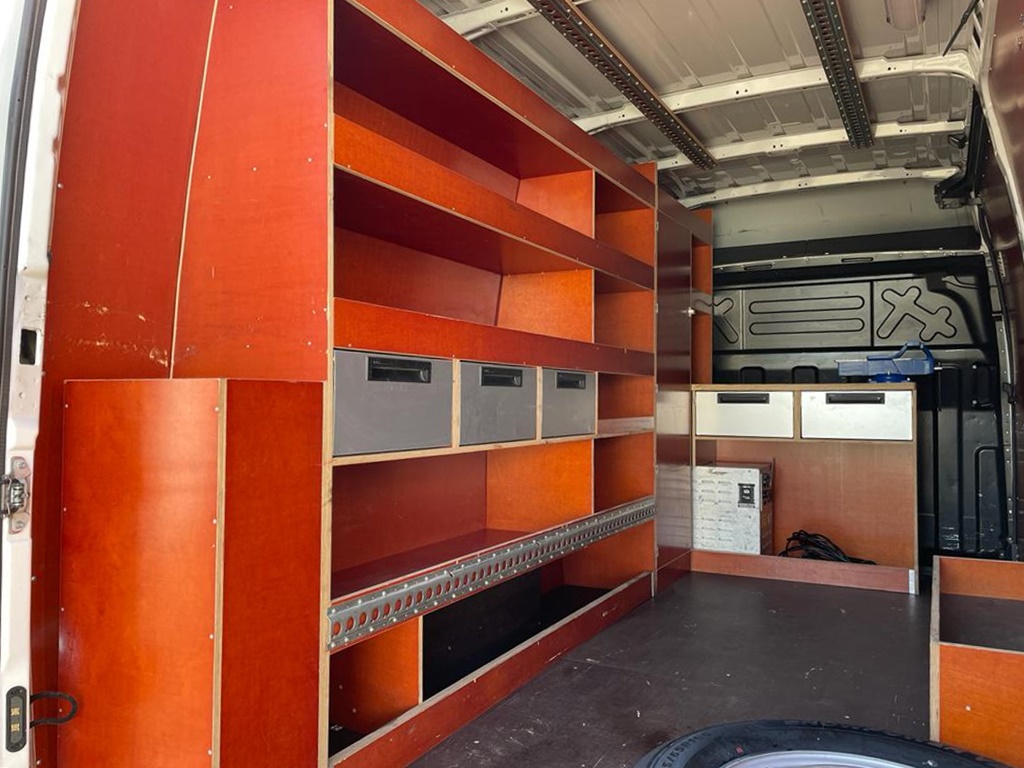 Mobilny warsztat wyposażony w bardzo stabilne, lekkie drewniane półki (płyta sitodrukowa).