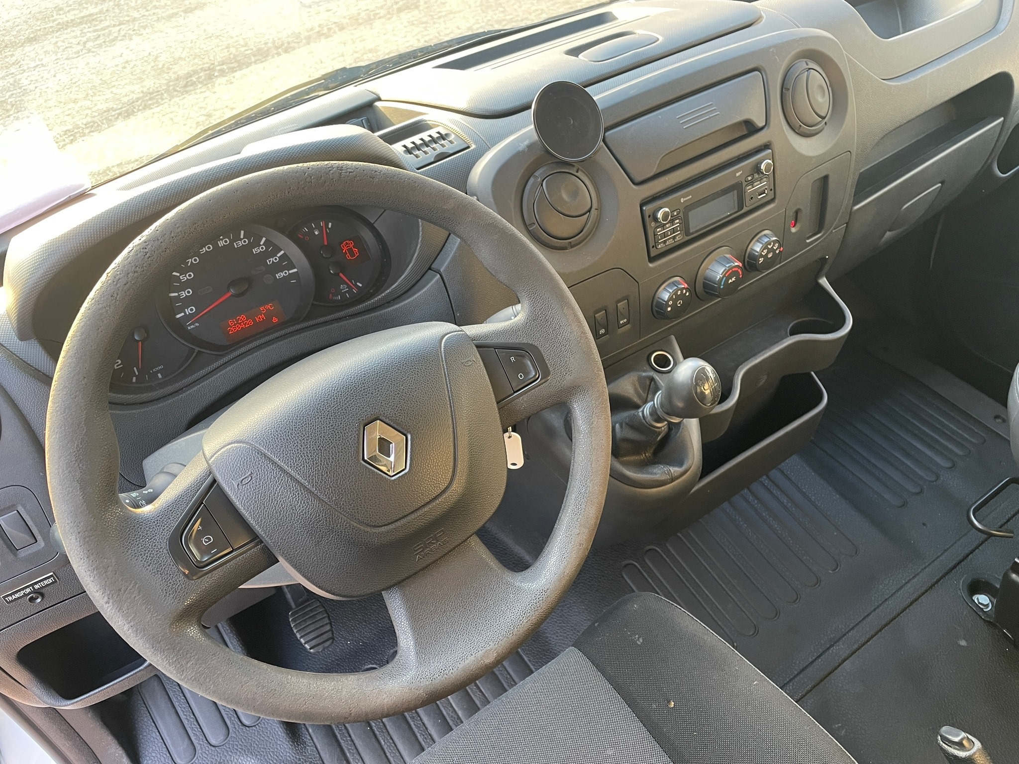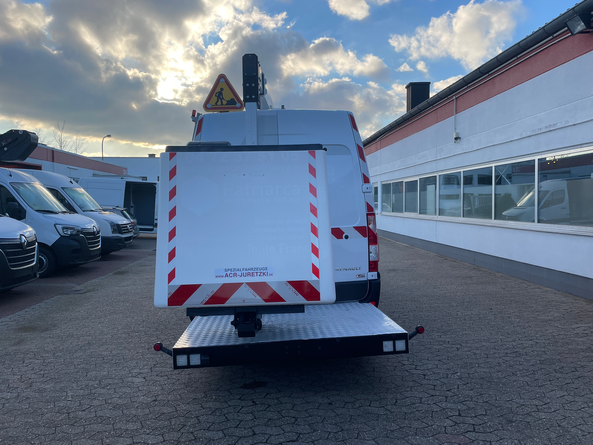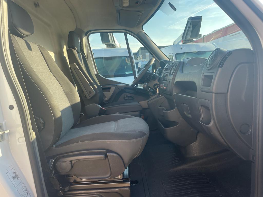 Platforma podnosząca K32 francuskiego producenta KLUBB zamontowana na Renault Master - pompa hydrauliczna ze sprzęgłem magnetycznym napędzana jest pasem klinowym napędzanym przez silnik pojazdu.