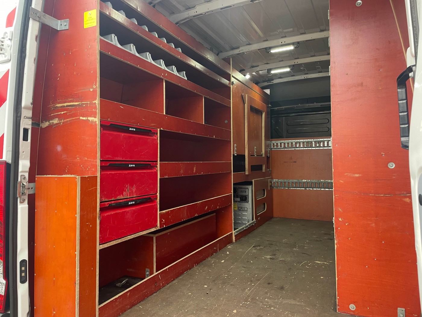 Mobilny warsztat wyposażony w bardzo stabilne, lekkie drewniane półki (płyta sitodrukowa).