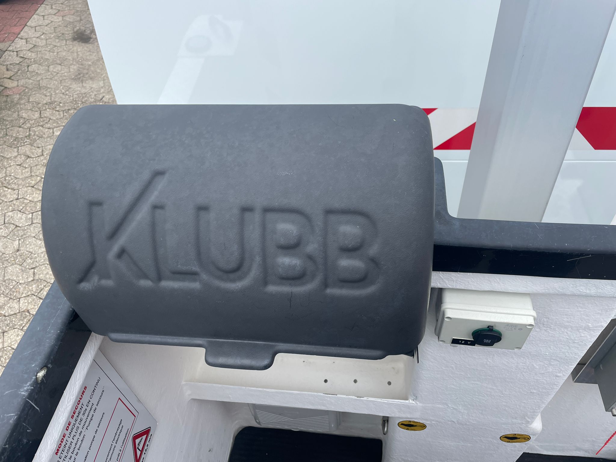 Podnośnik K26 francuskiego producenta KLUBB zamontowany na Renault Master - pompa hydrauliczna ze sprzęgłem magnetycznym jest napędzana paskiem klinowym napędzanym przez silnik pojazdu.