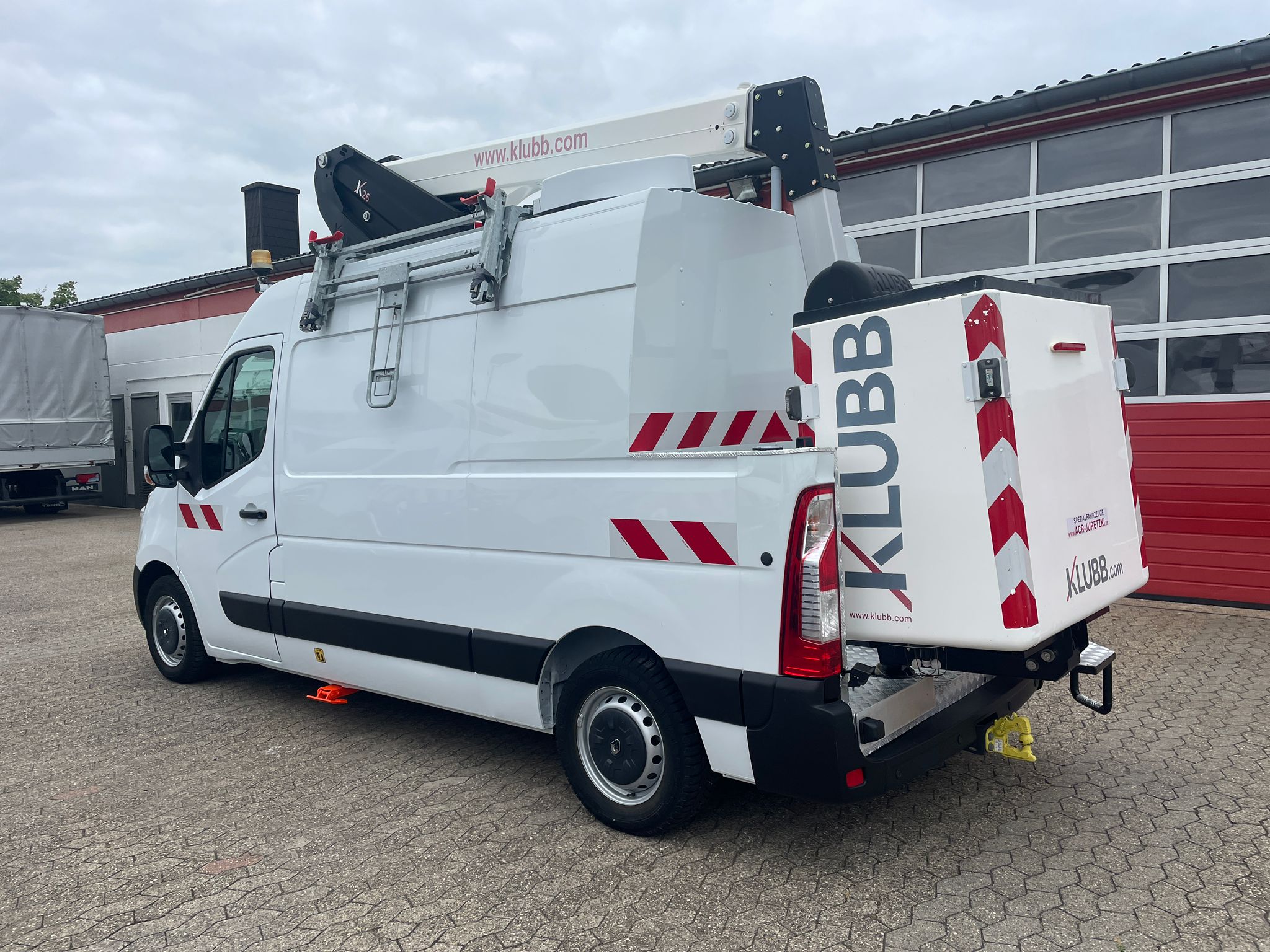 Podnośnik koszowy jest zamontowany na furgonetce panelowej, dzięki czemu jest jednym z najbardziej kompaktowych produktów na rynku i jest zoptymalizowany do użytku miejskiego.