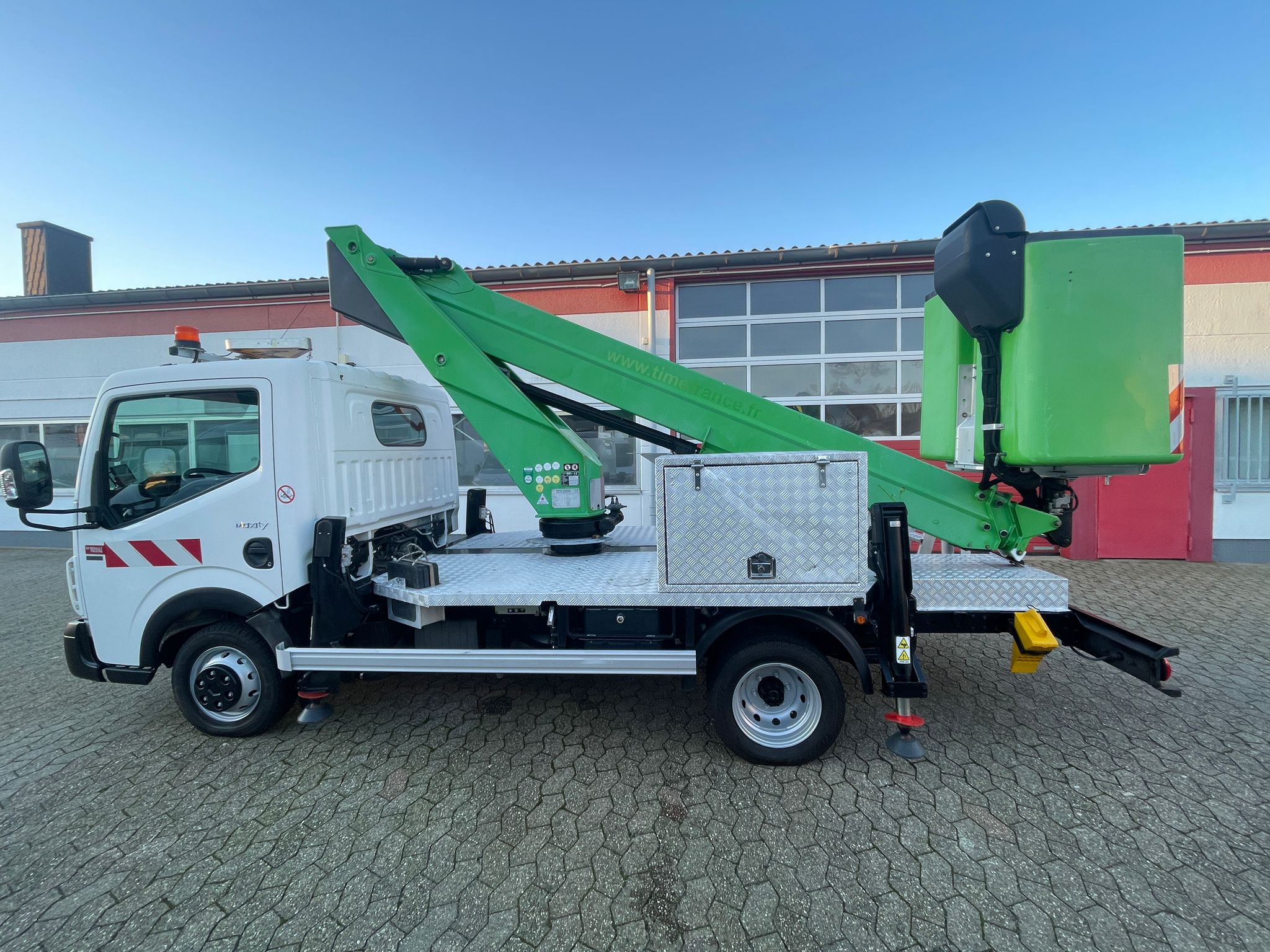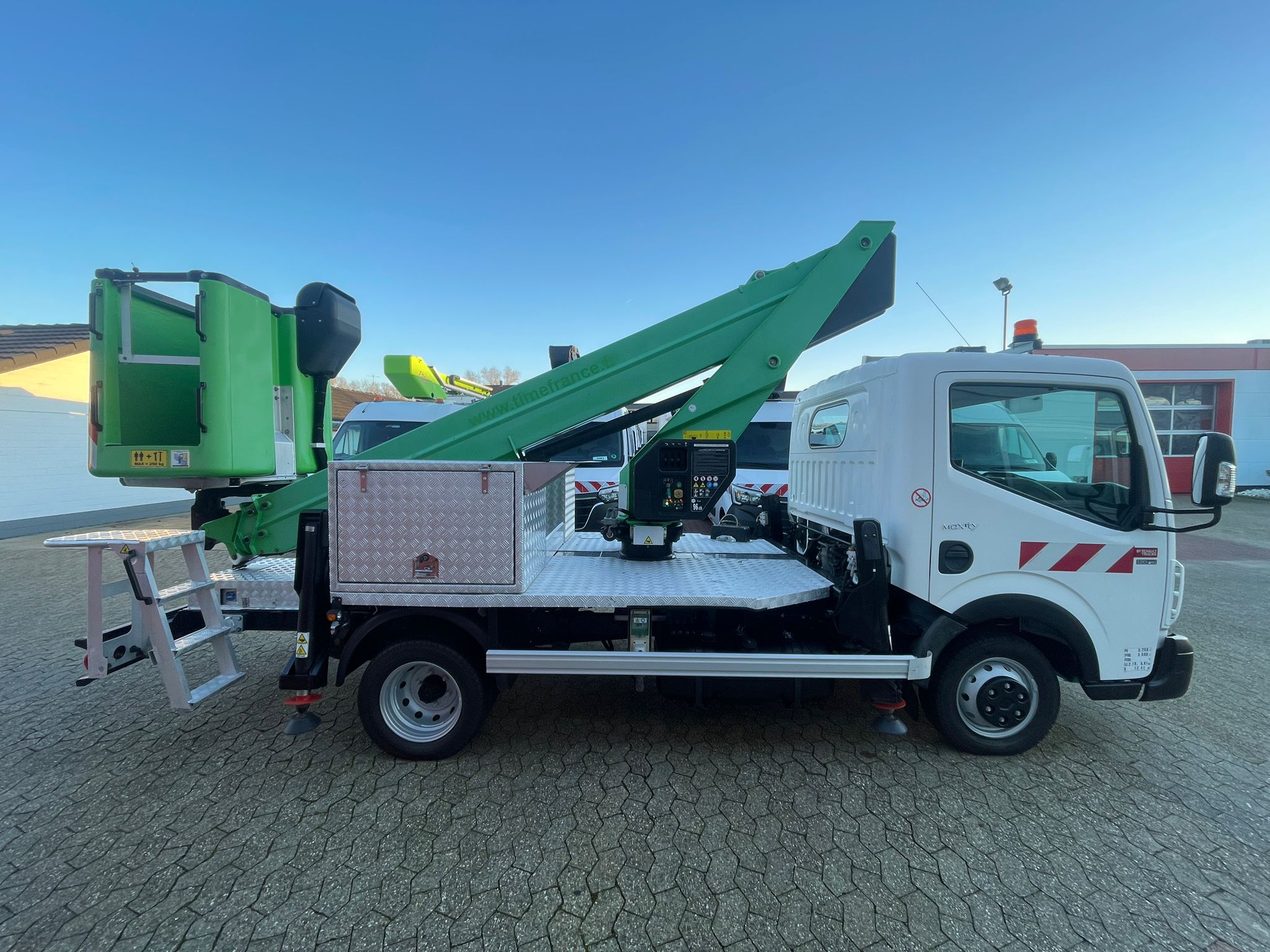 - Automatyczne poziomowanie kosza za pomocą siłownika hydraulicznego + podnośnik równoległoboczny na ramieniu kosza