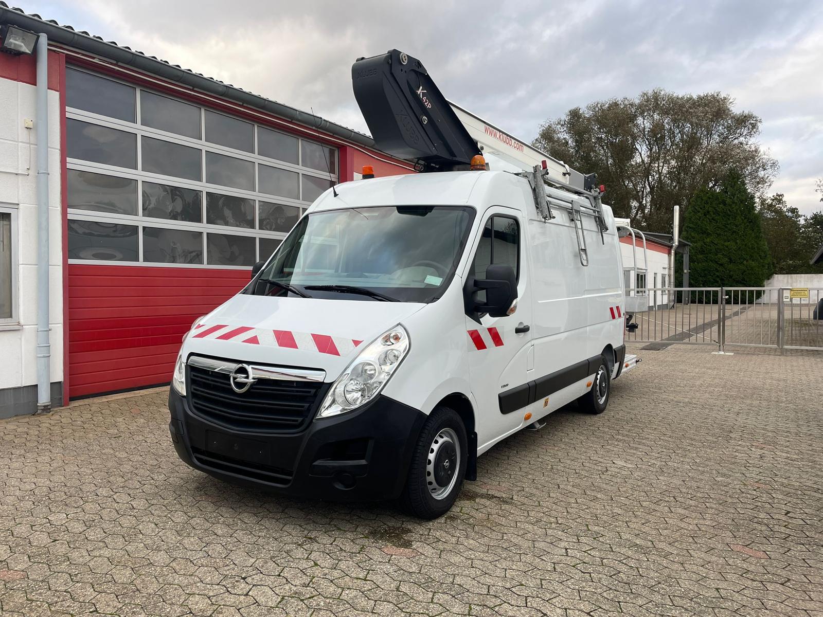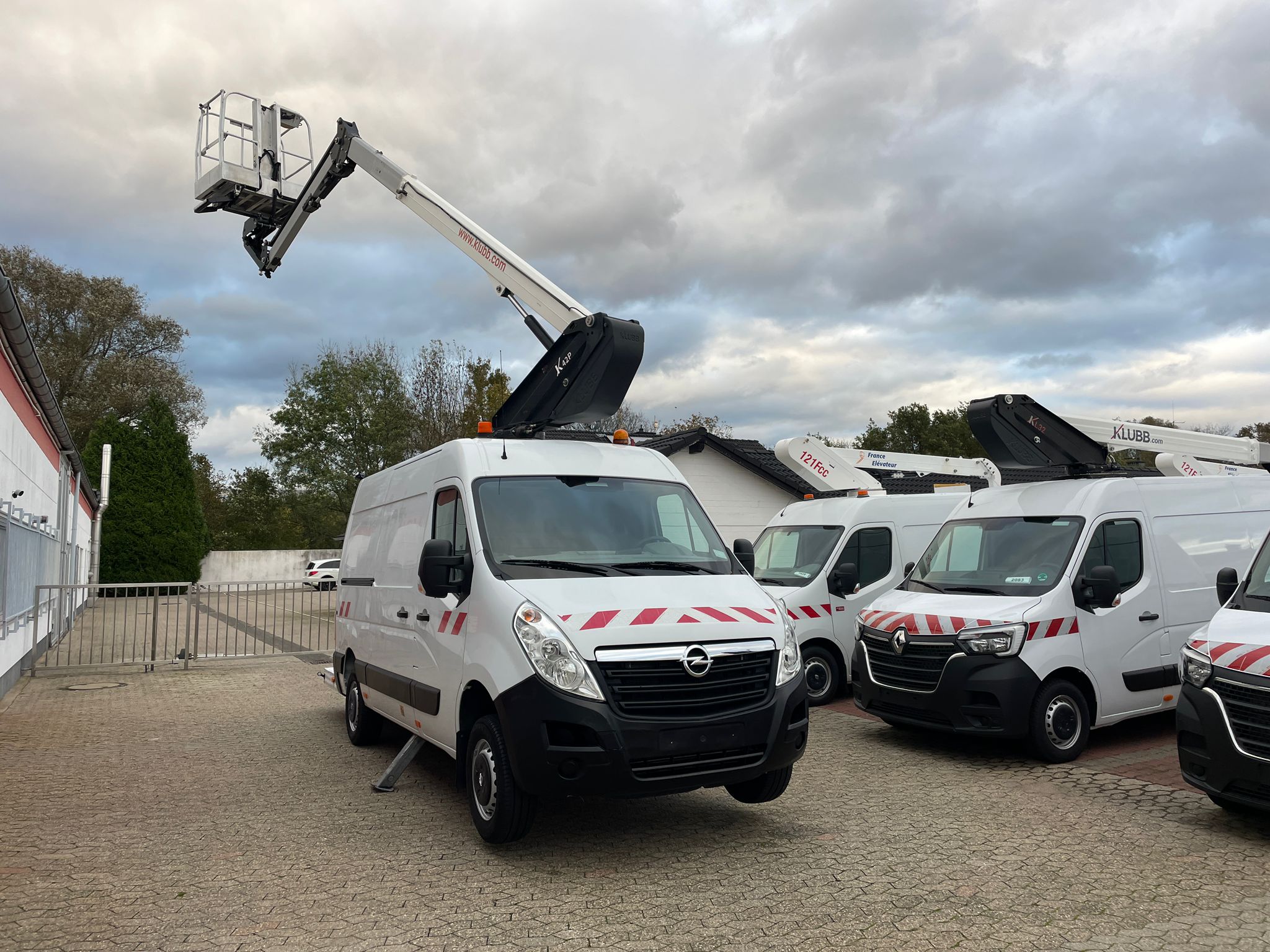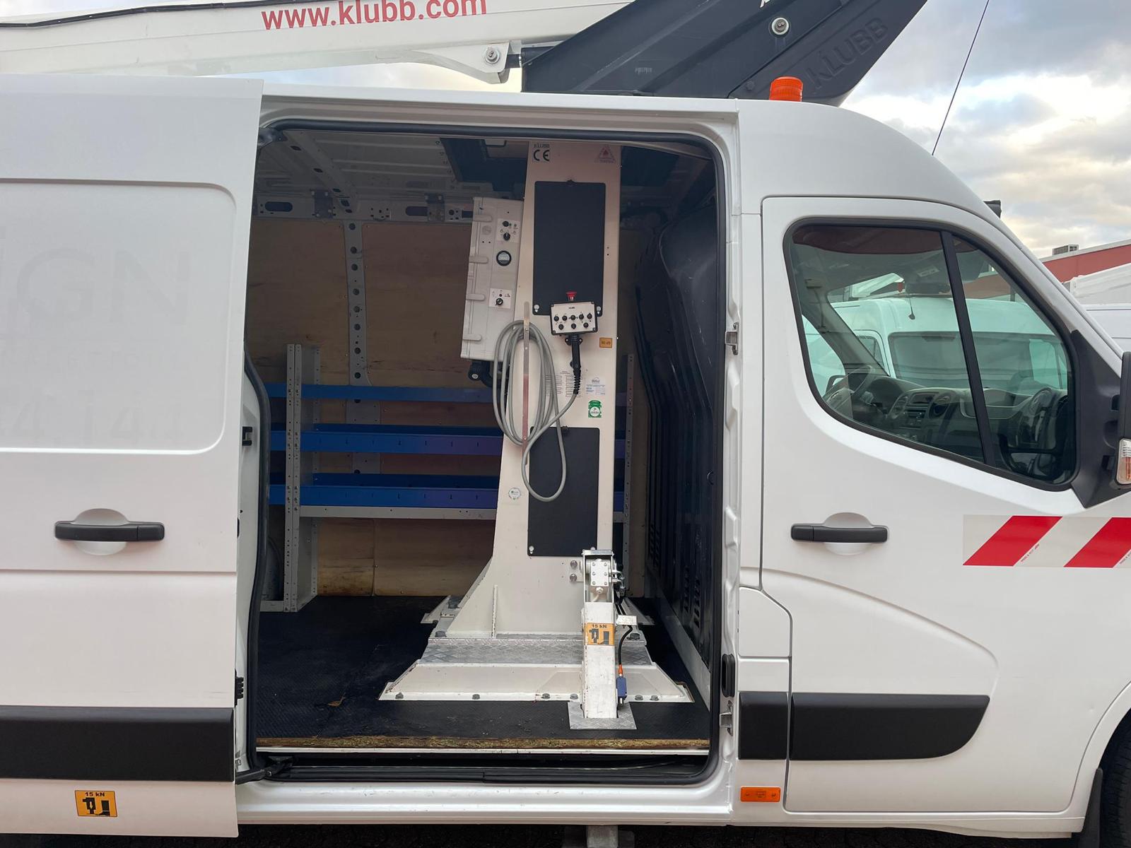 Podnośnik koszowy K42P francuskiego producenta KLUBB zamontowany na pojeździe Opel movano - pompa hydrauliczna ze sprzęgłem magnetycznym napędzana jest paskiem klinowym napędzanym przez silnik pojazdu.
