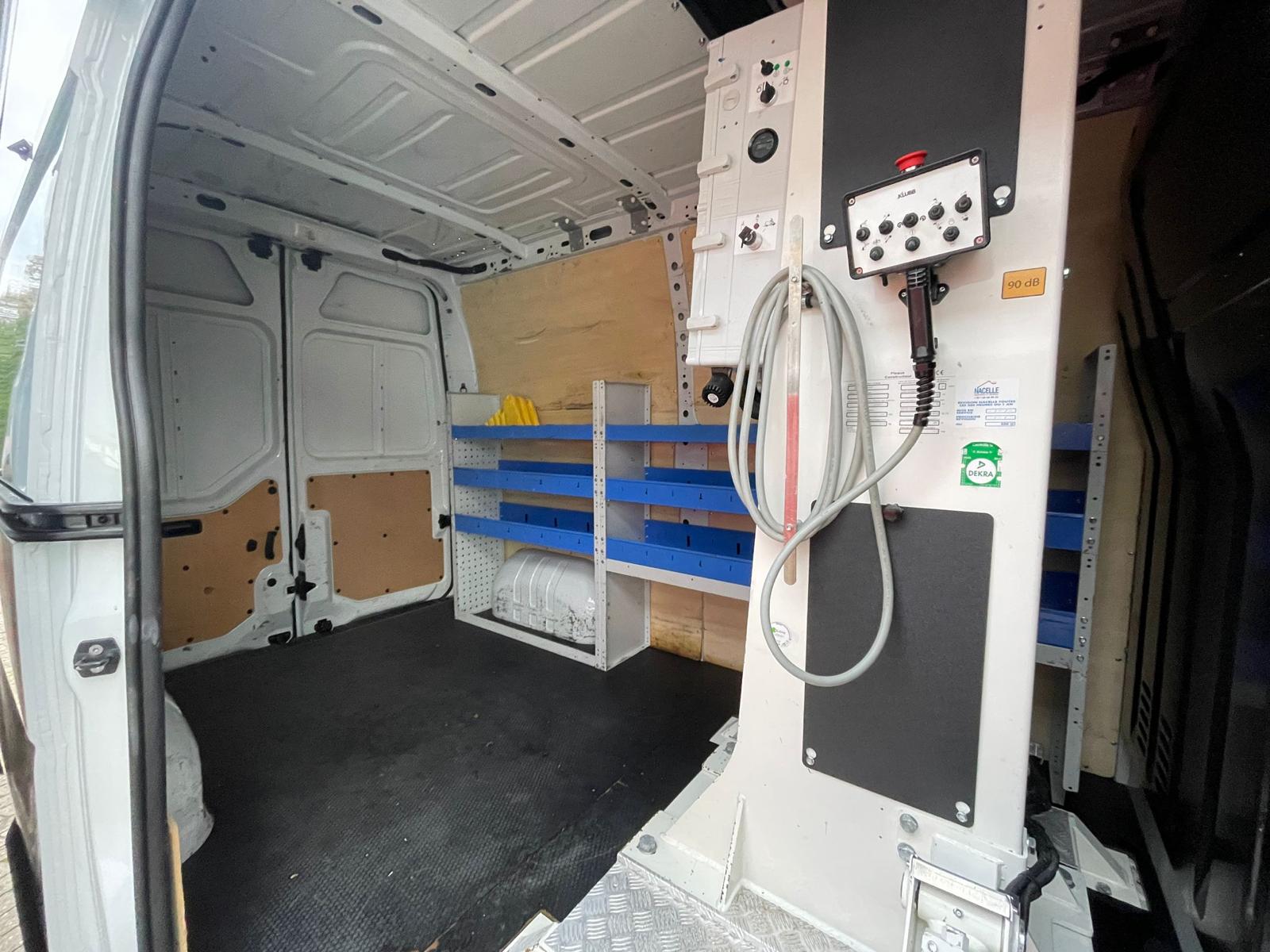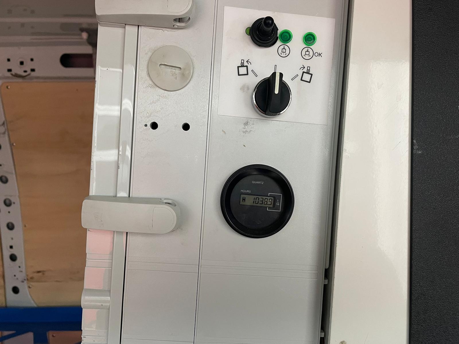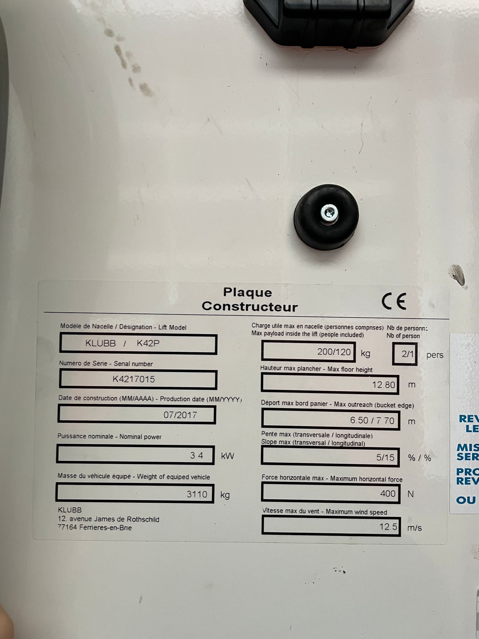 Podnośnik koszowy K42P francuskiego producenta KLUBB zamontowany na pojeździe Opel movano - pompa hydrauliczna ze sprzęgłem magnetycznym napędzana jest paskiem klinowym napędzanym przez silnik pojazdu.