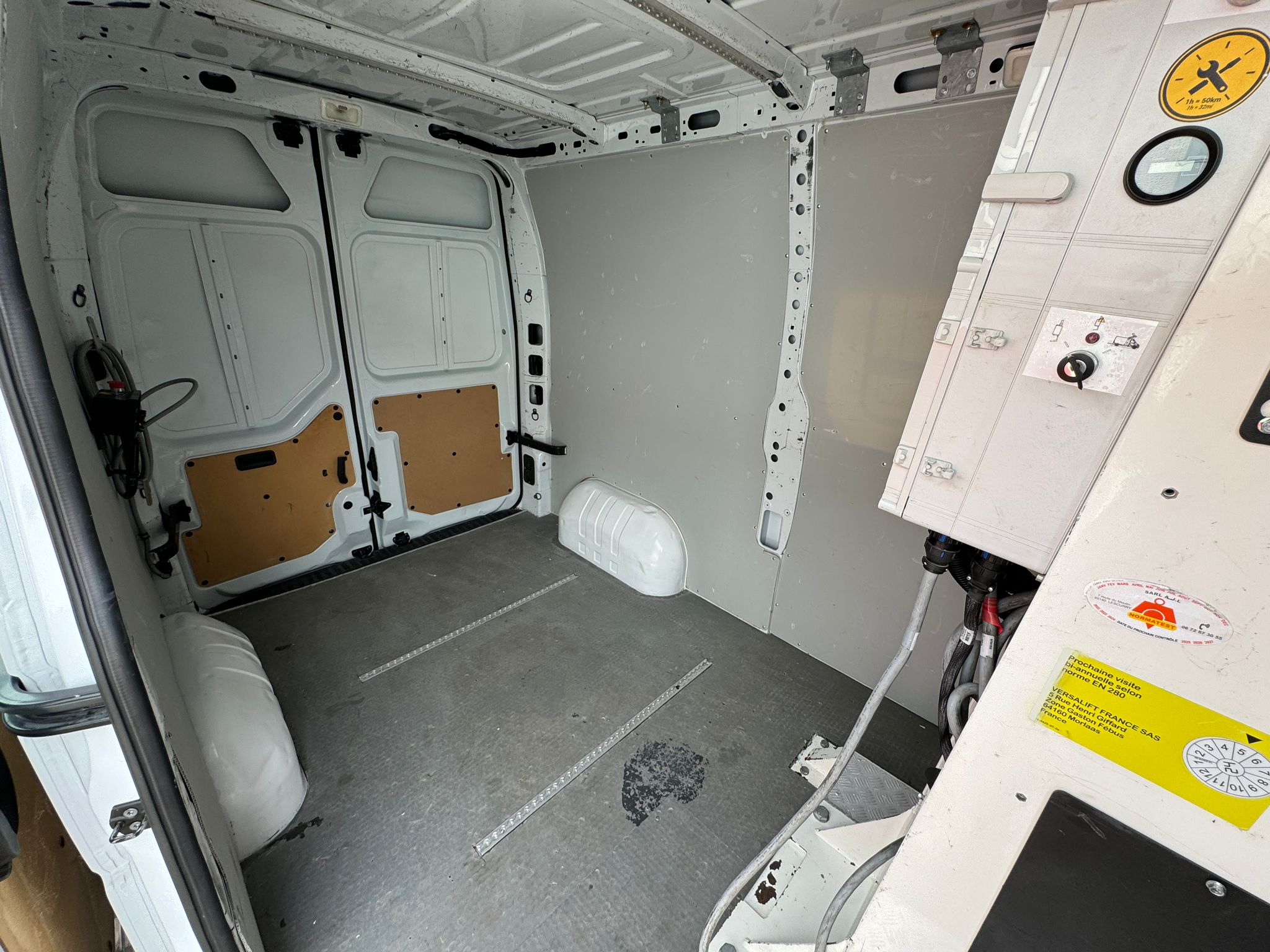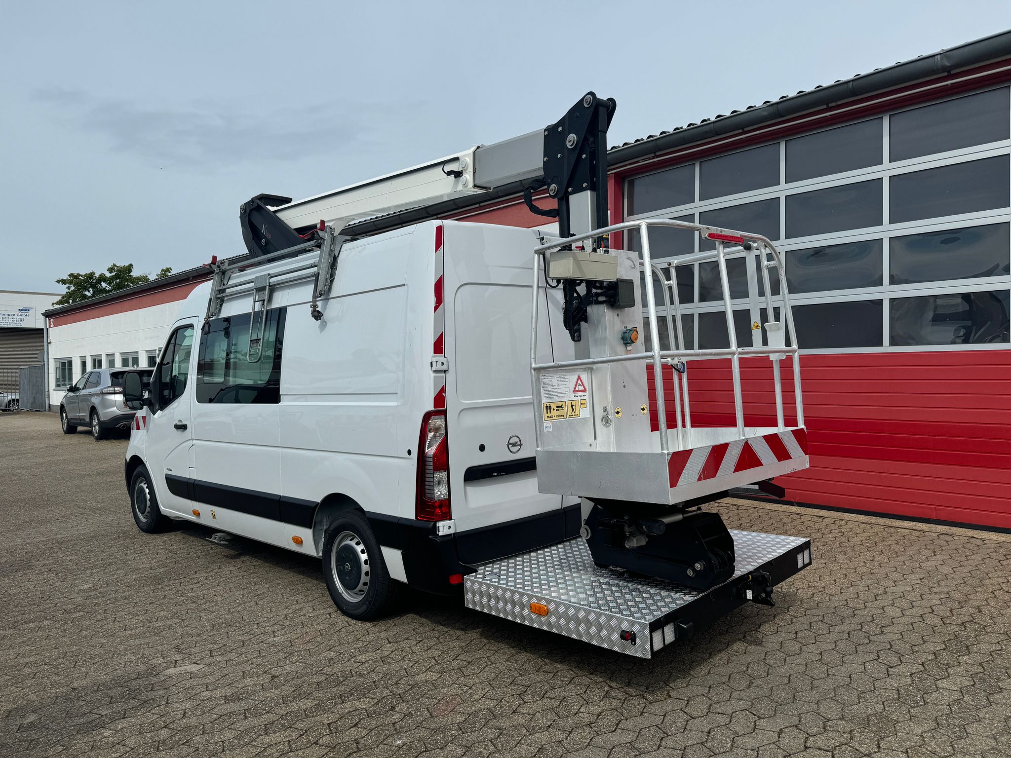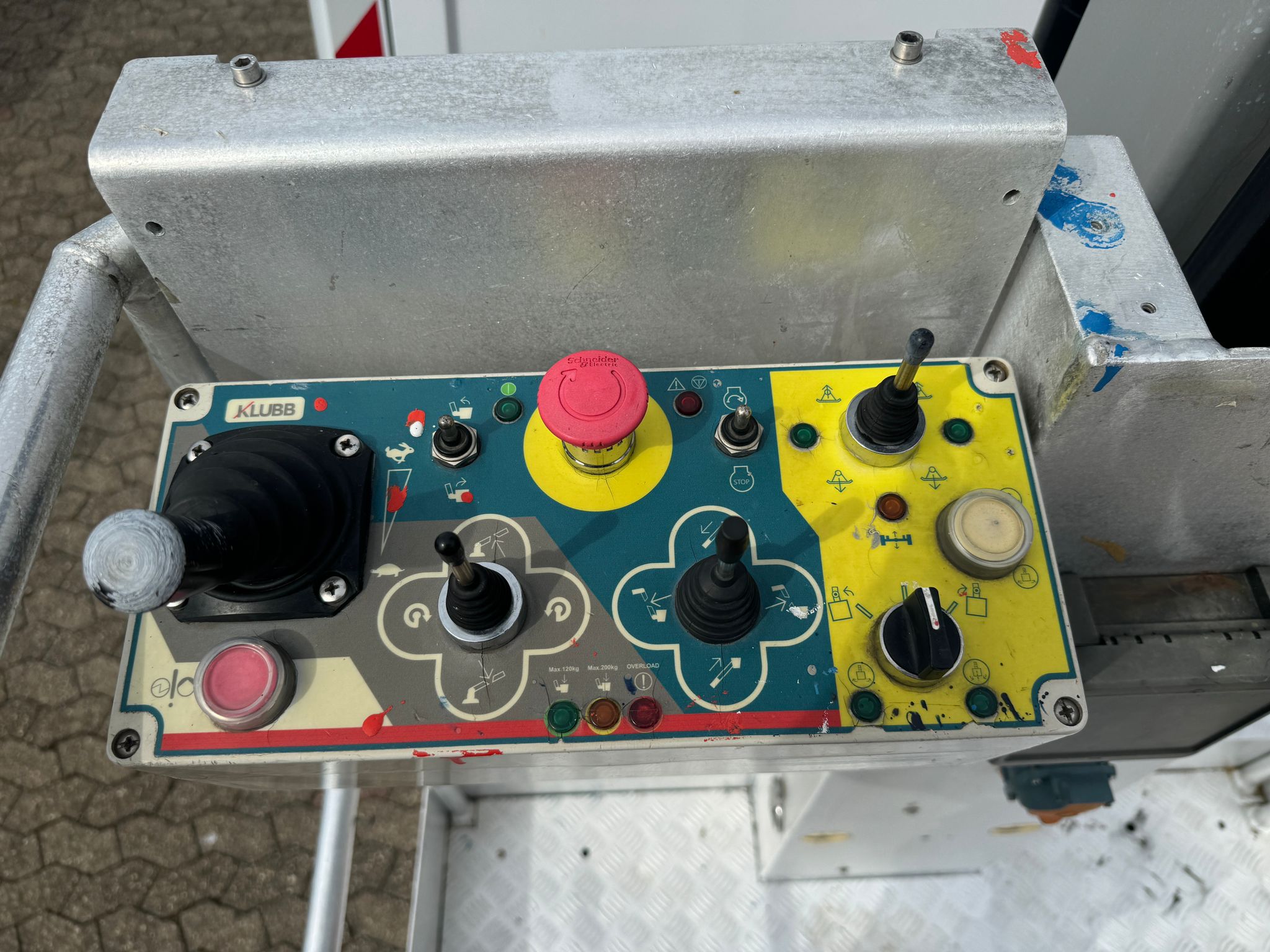 Podnośnik koszowy K38P francuskiego producenta KLUBB zamontowany na samochodzie Opel Movano - pompa hydrauliczna ze sprzęgłem magnetycznym jest napędzana paskiem klinowym napędzanym przez silnik pojazdu.