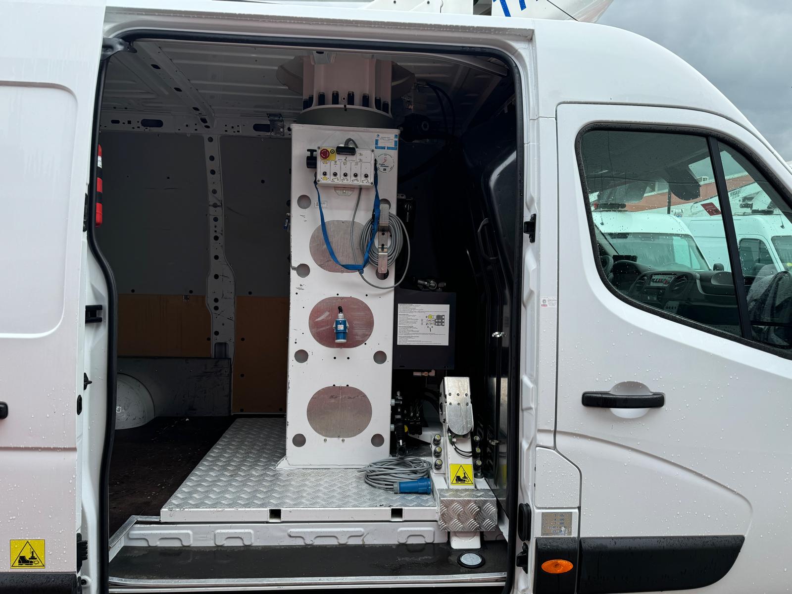 Podnośnik koszowy 172 TPFc francuskiego producenta France Elevateur zamontowany na samochodzie Renault Master. Pompa hydrauliczna jest napędzana przez przystawkę odbioru mocy na skrzyni biegów.
