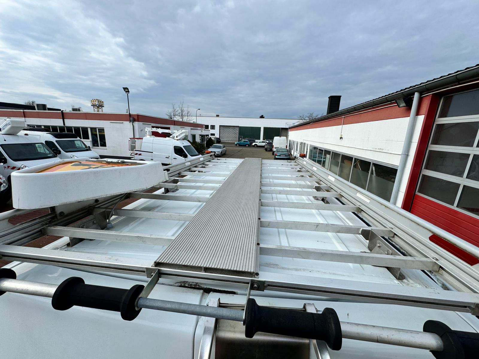 Renault Master to solidny i wszechstronny pojazd użytkowy, idealnie nadający się na mobilny warsztat. W tej konfiguracji został wyposażony w drabinę zamontowaną na tylnych drzwiach, co ułatwia dostęp do dachu pojazdu oraz załadunek i transport materiałów na bagażniku dachowym z relingami.