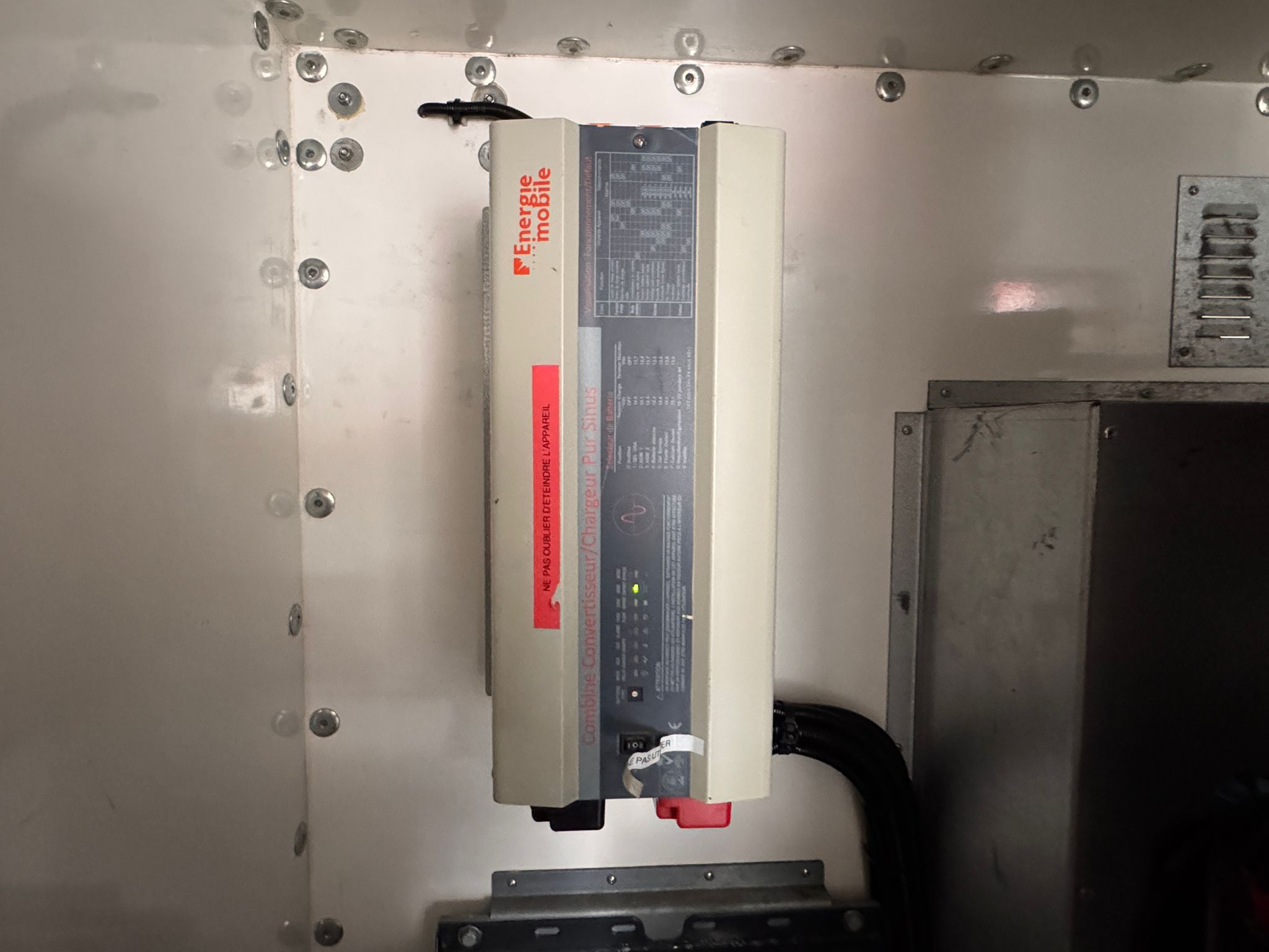 W koszu znajduje się gniazdko 220V do podłączania różnego rodzaju narzędzi elektrycznych, takich jak wiertarki, lampy czy przyrządy pomiarowe.