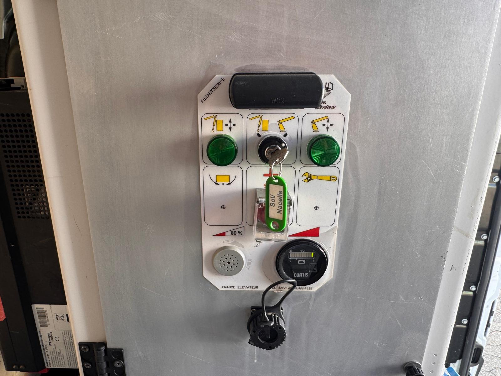 Renault Master jest wyposażony w profesjonalny podnośnik roboczy producenta France Elevateur, model 152 TPFcc.