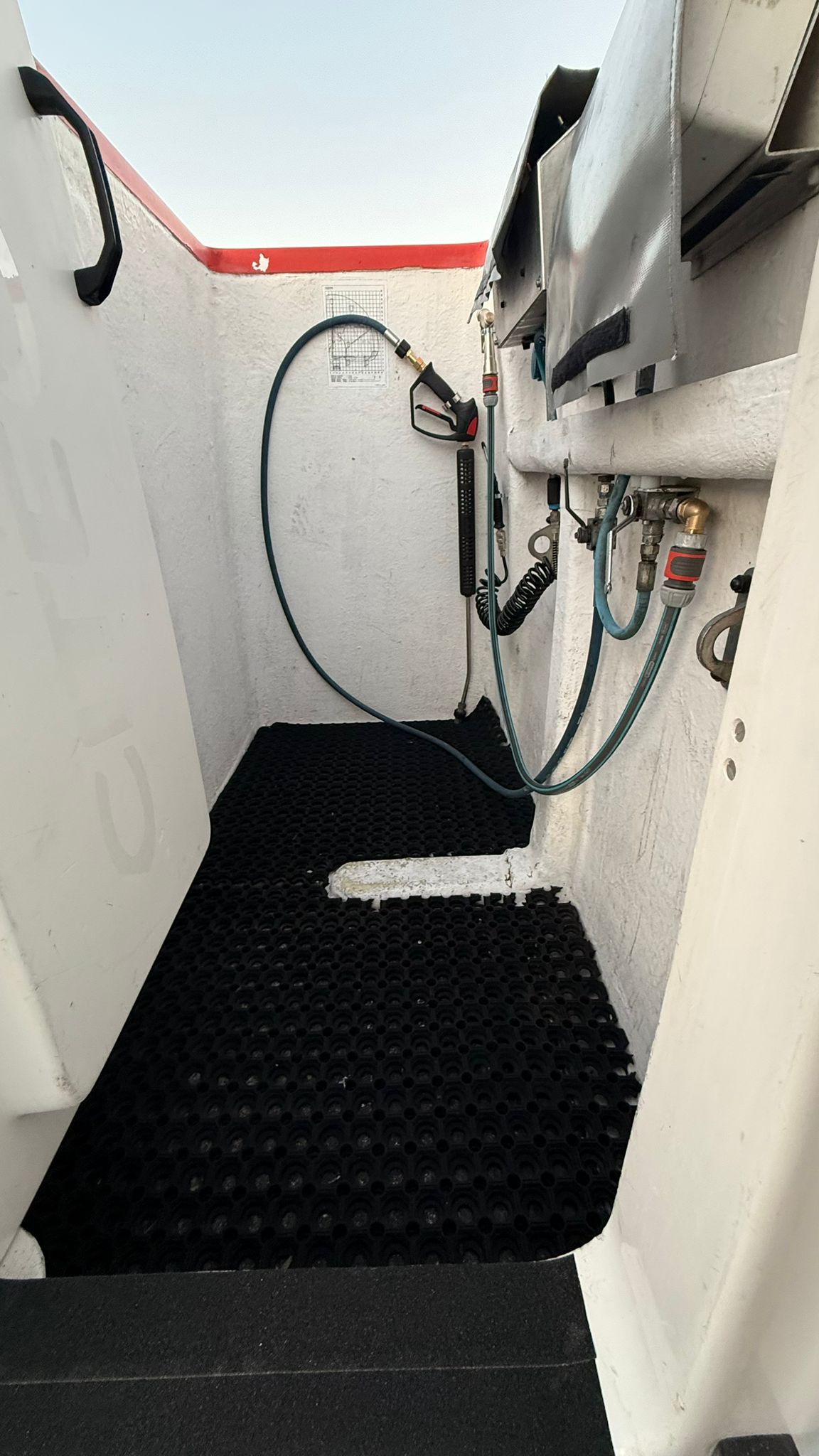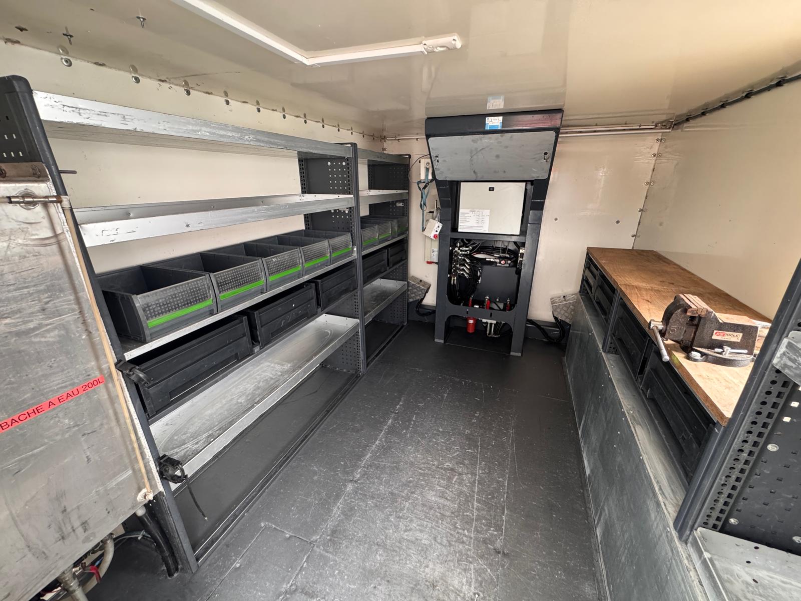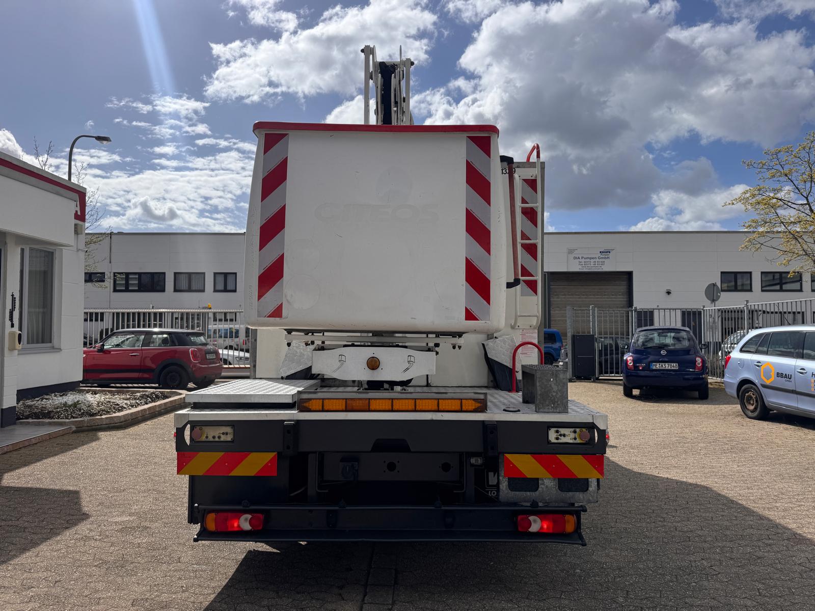 Renault D12 z podnośnikiem koszowym France Elevateur 192 CPM, zamontowany na 12-tonowej ciężarówce, przeznaczony m.in. do prac przy czyszczeniu elewacji. Kosz wyposażony jest w pompę wysokociśnieniową (200 bar) napędzaną silnikiem benzynowym oraz dodatkowe przyłącze wody z pompą elektryczną 24 V (2,7 bar). W koszu znajduje się także przyłącze sprężonego powietrza.